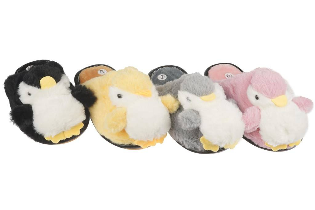 Pantofle dziecięce z motywem pingwinów świetnie sprawdzają się jako kapcie domowe, a ich uroczy wygląd sprawia, że stanowią także doskonały pomysł na prezent pod choinkę lub na Mikołajki. Produkt dostępny jest w hurtowni w rozmiarach od 30 do 35.