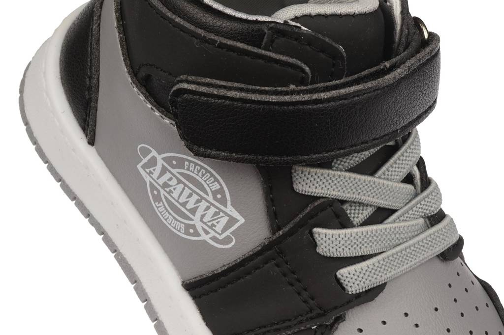 Buty sportowe dziecięce firmy Apawwa w kolorze czarnym z szarymi wstawkami oraz nadrukiem na boku. Cholewka została wykonana ze skóry ekologicznej wysokiej jakości w bardzo ładnym designie na wzór oryginalnych butów sportowych. Wewnątrz znajduję się niezwykle miękka wkładka ze skóry naturalnej, odpowiada ona za prawidłowe ułożenie stopy jak i wysoki komfort podczas chodzenia. Gumowe podeszwy zabezpieczają przed poślizgiem a buty same w sobie są lekkie, wygodne i świetnie prezentują się na nodze. Zapięcie na rzepę ułatwia i przyśpiesza zakładanie a gumki imitujące sznurówki dodają charakteru. Buty sportowe chłopięce Apawwa będą idealne do codziennego użytku, świetnie uzupełnią każdą stylizację. Dostępne są w naszej hurtowni obuwia w rozmiarach 20-25.