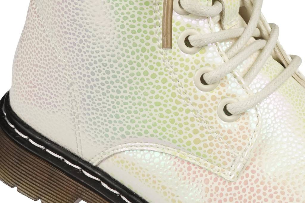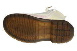 Piękne buty zimowe dziecięce firmy Apawwa w białym kolorze z holograficzny6m wykończeniem. Wykonane zostały na wzór glanów z bardzo dobrej jakości skóry ekologicznej. Ich podeszwy wyglądają na masywne i ciężkie jednak wykonane zostały z lekkich materiałów co sprawia że model ten jest wygodny podczas użytkowania. Bieżnik zapobiega poślizgowi a kolorowa cholewka nadaje uroku całości. Wnętrze obuwia zostało obszyte kożuchem, który odpowiada za komfort i nieprzepuszczanie zimna do środka. Model ten wyposażony został w zapięcie na zamek od wewnętrznej strony, ułatwia to i przyśpiesza zakładanie obuwia. Nasza hurtownia obuwia posiada ten model w rozmiarach 26-31.
