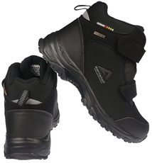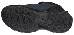 Buty trekkingowe młodzieżowe firmy American Club w dwóch kolorach - czarnym i granatowym. Wykonane zostały solidnie i starannie z wysokiej jakości materiału typu Softshell, który jest miękki i lekki, a zarazem niezwykle wytrzymały. Pozwala utrzymać świeżość wewnątrz buta a dodatkowo chroni stopę przed deszczem, wiatrem i niską temperaturą. Dzięki zaawansowanej technologii wilgoć odprowadzana jest na zewnątrz obuwia, jednocześnie nie pozwalając przenikać jej do środka. Trekkingi posiadają piankową podeszwę, która sprawia że są one lekkie, zapobiegają one również poślizgowi dzięki gumowemu wykończeniu. Model ten doskonale sprawdzi się więc na piesze wycieczki w góry, ale będzie również odpowiedni do codziennego użytku, dostępny jest w naszej hurtowni w rozmiarach 37-41.