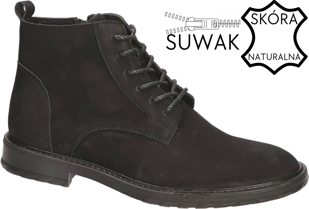Buty zimowe męskie firmy American Club w kolorze czarnym z ozdobnymi przeszyciami. Zostały wykonane w bardzo modnym design ze skóry naturalnej zamszowej. Dzięki grubej podeszwie z lekkim obcasem buty wyglądają elegancko i nie ślizgają się, a jeszcze wyższy komfort podczas użytkowania gwarantuje miękka wkładka. Ocieplane wnętrze idealnie sprawdzi się podczas zimnych dni, model ten świetnie wpasuje się w każdą stylizację. Dodatkowo dla większej wygody na wewnętrznej stronie cholewki został wszyty zamek dla ułatwienia zakładania. Buty zimowe męskie dostępne są w naszej hurtowni w rozmiarach 41-45.