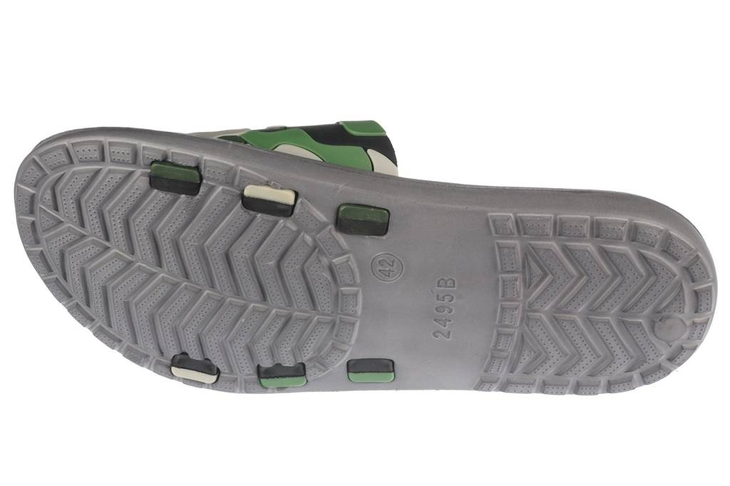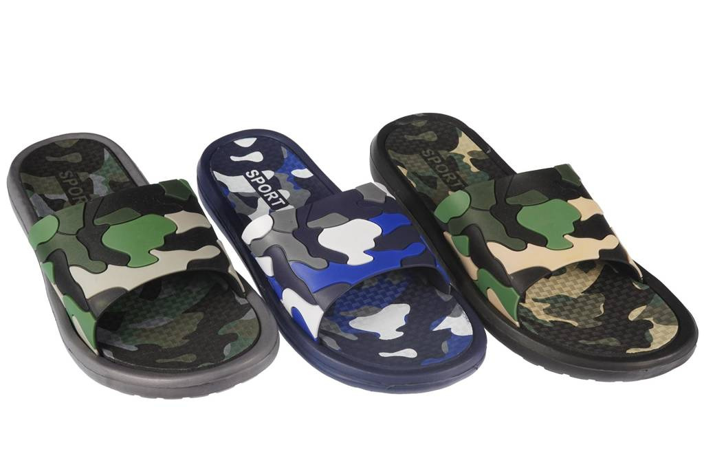 Klapki basenowe męskie firmy Sport w czterech kolorach - granatowym, szarymi czarnym. Wykonane zostały z wysokogatunkowej pianki w bardzo ładnym stylu. Posiadają bardzo modny wzór moro, który nadaje charakteru i przyciąga uwagę. Ich podeszwy zapobiegają poślizgowi co sprawia że klapki będą bezpieczne na basenie. Elastyczny materiał idealnie dopasowuje się do stopy, nie pochłania wody, jest również odporny na ścieranie jak i ślizganie. Klapki męskie Sport dostępne są w naszej hurtowni w rozmiarach 40-45.