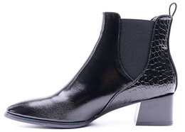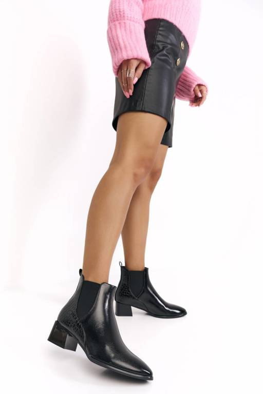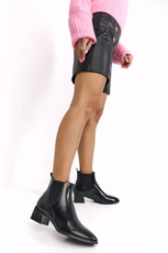 Sztyblety damskie firmy Sergio Leone w klasycznym czarnym kolorze zakończone migdałowym noskiem, który optycznie wydłuża i wyszczupla sylwetkę. Cholewka wykonana została w gładkim wykończeniu ze skóry ekologicznej o wysokiej jakości, materiał ten świetnie sprawdza się w tego typu obuwiu, jest również łatwy w utrzymaniu czystości. Model ten posiada wszyte gumki po po obu stronach co ułatwia zakładanie. Środek wyposażony został w ocieplacz jakim jest miękki i przyjemny w dotyku polar. Model ten będzie pasował idealnie do sukienek ale również świetnie skomponuje się ze spodniami. Chropowata podeszwa zapobiega poślizgowi a miękka wkładka zapewnia wygodę podczas użytkowania. Buty damskie Sergio Leone znajdują się one w naszej hurtowni w rozmiarach 36-40.