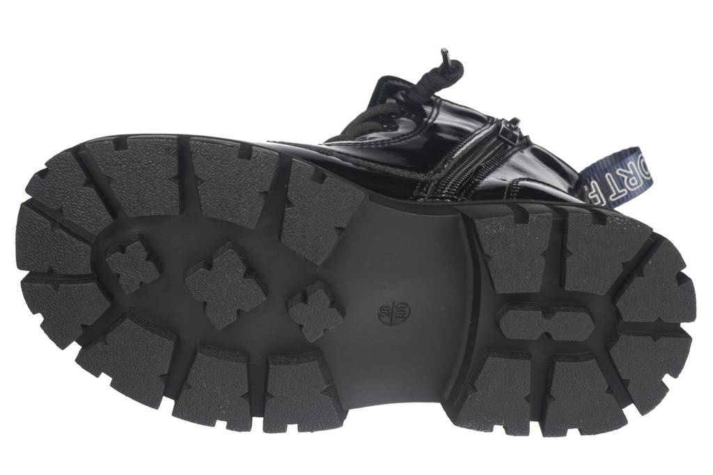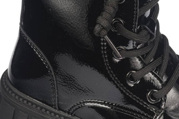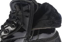 Piękne buty zimowe dziecięce firmy Apawwa w kolorze czarnym i lakierowaną cholewką. Stworzone zostały na wzór glanów z bardzo dobrej jakości materiałów. Ich podeszwy wyglądają na masywne i ciężkie jednak wykonane zostały z lekkich materiałów co sprawia że model ten jest wygodny podczas użytkowania. Bieżnik zapobiega poślizgowi a ciekawa cholewka nadaje uroku całości. Wnętrze obuwia zostało obszyte kożuchem, który odpowiada za komfort i nieprzepuszczanie zimna do środka. Model ten wyposażony został w zapięcie na zamek od wewnętrznej strony, ułatwia to i przyśpiesza zakładanie obuwia. Nasza hurtownia obuwia posiada ten model w rozmiarach 26-31.