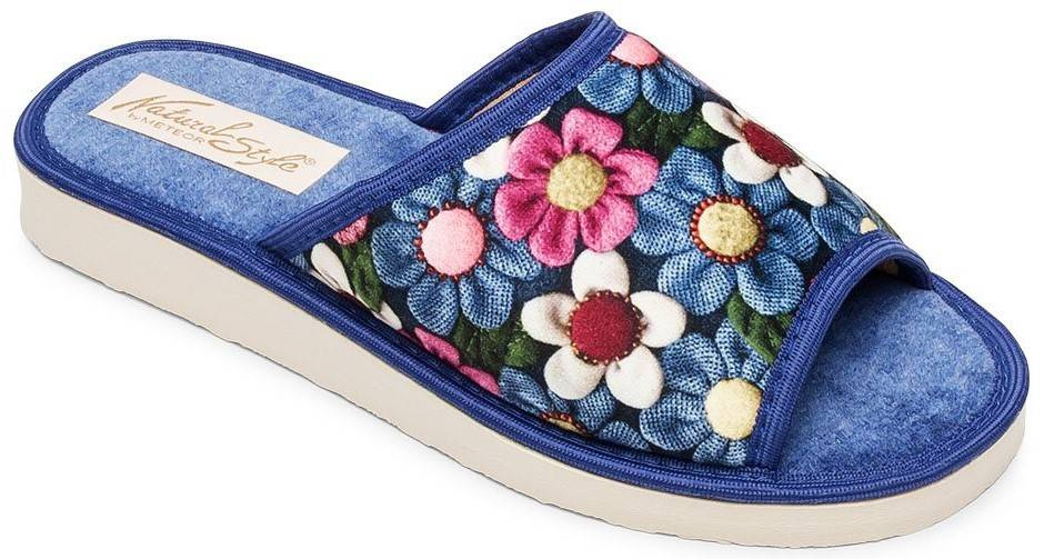 Pantofle damskie Meteor to elegancka i funkcjonalna propozycja, która łączy wysoką jakość wykonania z nowoczesnym designem. Te stylowe buty dostępne są w dwóch wyjątkowych kolorach – granatowym i bordowym – ozdobione subtelnym kwiatowym wzorem, który nadaje im unikalny, kobiecy charakter. Zastosowanie starannie dobranych materiałów tekstylnych gwarantuje trwałość i solidność, co sprawia, że obuwie wyróżnia się wyjątkową odpornością na uszkodzenia oraz długowiecznością.