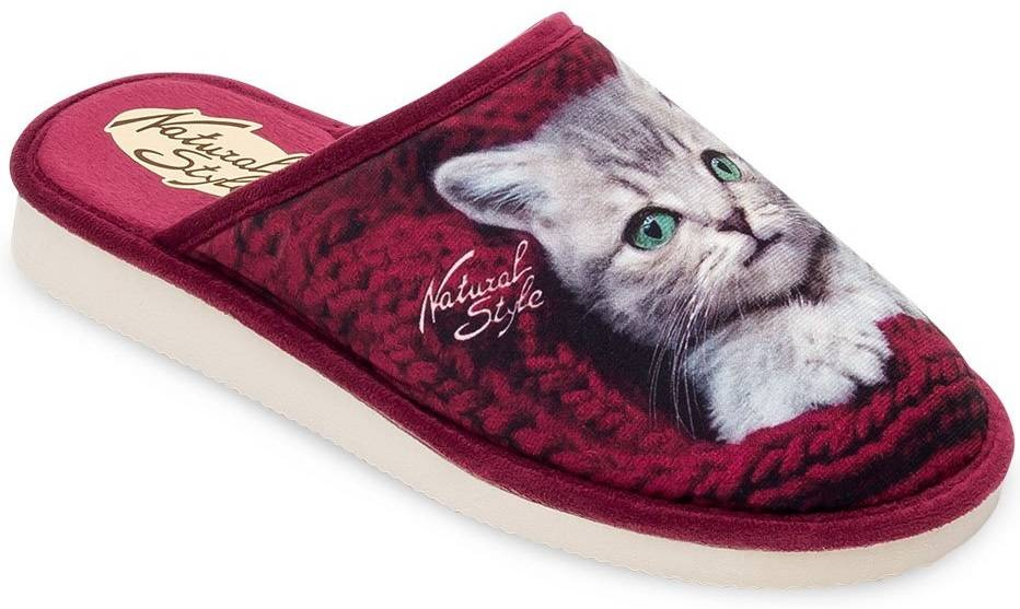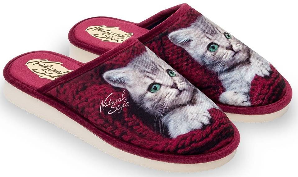 Pantofle damskie Meteor w kolorach granatowym i bordowym z uroczo haftowanym motywem kotka na przodzie to połączenie elegancji i funkcjonalności. Wykonane z wysokiej jakości materiałów tekstylnych, które charakteryzują się wyjątkową miękkością i przyjemnością w dotyku, zapewniają komfort noszenia przez długi czas. Miękka i wygodna podeszwa z pianki gwarantuje bardzo wysoki poziom komfortu, a dodatkowy bieżnik na podeszwie skutecznie zapobiega ślizganiu się, co zwiększa bezpieczeństwo użytkowania. Zamknięte przody oraz przyjemny materiał wewnętrzny dbają o odpowiednią temperaturę stóp, oferując ciepło i wygodę. Pantofle Meteor stanowią doskonały wybór na obuwie zmienne w domowych warunkach, łącząc estetykę z funkcjonalnością. Dostępne w rozmiarach od 36 do 40, są odpowiednie dla szerokiego grona użytkowników. Dzięki wyjątkowemu designowi i wysokiej jakości materiałom, stanowią one niezawodne obuwie do użytku codziennego.
