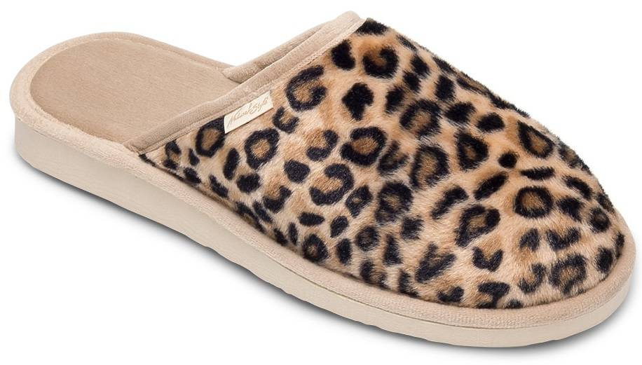Pantofle damskie Meteor w kolorze czarnym i beżowym z modnym wzorem w panterkę to elegancka propozycja dla osób szukających stylowego obuwia domowego. Wykonane z wysokiej jakości materiałów tekstylnych, które charakteryzują się wyjątkową miękkością i przyjemnością w dotyku, zapewniają komfort noszenia przez cały dzień. Miękka, piankowa podeszwa gwarantuje wysoki poziom wygody, redukując zmęczenie stóp. Dodatkowo, bieżnik na podeszwie zapobiega poślizgom, co zwiększa bezpieczeństwo podczas użytkowania. Zamknięte przody oraz przyjemny materiał wewnętrzny skutecznie chronią stopy przed chłodem, zapewniając ciepło i komfort. Pantofle Meteor to doskonały wybór na obuwie zmienne w domowych warunkach, które łączy funkcjonalność z atrakcyjnym designem. Dostępne w rozmiarach od 36 do 40, są idealnym rozwiązaniem dla osób ceniących wygodę oraz styl. Dzięki staranności wykonania oraz zastosowaniu materiałów najwyższej jakości, pantofle te stanowią niezawodny wybór do codziennego użytku.
