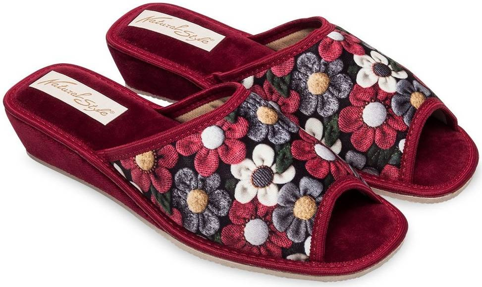 Pantofle damskie Meteor to elegancka i komfortowa opcja obuwia, dostępna w trzech modnych wariantach kolorystycznych: czerwonym, granatowym oraz fioletowym. Każdy model ozdobiony jest subtelnym kwiatowym wzorem, który dodaje im wyjątkowego charakteru. Obuwie zostało zaprojektowane z wysokiej jakości materiałów tekstylnych, co gwarantuje miękkość, trwałość oraz komfort użytkowania.