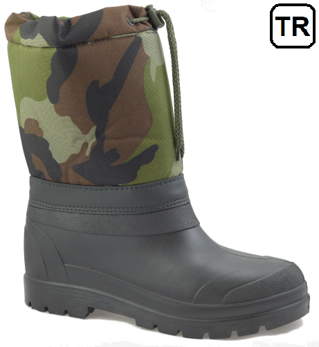 Śniegowce męskie piankowe firmy Skarbek w zielonym kolorze we wzorze moro. Wykonane zostały z elastycznej, odpornej na zagniecenia, otarcia jak i wodę pianki, która gwarantuje nie tylko maksymalny komfort użytkowania ale również długotrwałość produktu. Bieżnikowana podeszwa zabezpiecza przed poślizgiem a ich największą zaletą jest miękkie ocieplenie wewnątrz, gwarantuje ono utrzymanie ciepła nawet podczas minusowych temperatur. Model ten sięga do połowy łydki i jest lekki. Kalosze męskie dostępne są w naszej hurtowni w rozmiarach 40-47.