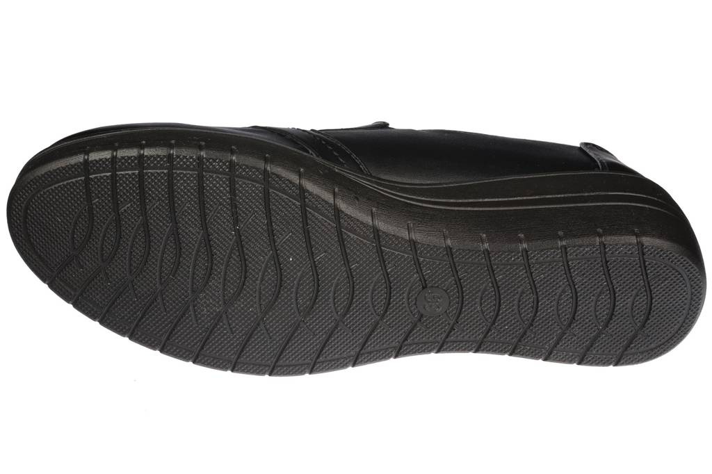 Półbuty damskie firmy Le Scarpe w klasycznym czarnym kolorze z delikatnym przeszyciem na cholewce to połączenie elegancji z nowoczesnym stylem. Wykonane z wysokiej jakości skóry ekologicznej, charakteryzują się modnym wyglądem oraz starannym wykończeniem, co czyni je doskonałym wyborem do różnych stylizacji.