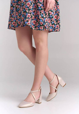Stabilny obcas w formie klocka dodaje obuwiu szyku i klasy, jednocześnie zapewniając większy komfort w porównaniu do tradycyjnej szpilki. Optymalna wysokość obcasa subtelnie wysmukla sylwetkę, a starannie zaprojektowana konstrukcja gwarantuje wygodę nawet przy długotrwałym noszeniu. Regulowane paski do zapinania pozwalają na idealne dopasowanie buta do stopy, zwiększając stabilność i komfort użytkowania.