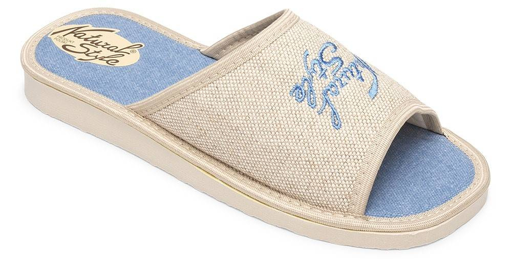 Śliczne pantofle damskie firmy Meteor w niebieskim i brązowym oraz haftowanym napisem oraz lnianym wykończeniem. Zaprojektowane zostały w bardzo modnym stylu z wysokiej jakości materiałów tekstylnych, które są bardzo przyjemne w dotyku. Posiadają miękką i wygodną podeszwę z pianki, która zapewnia bardzo wysoki komfort podczas użytkowania. Dodatkowo podeszwa posiada bieżnik, który zapobiega ślizganiu się. Posiadają otwarte przody, dlatego będą doskonałe na cieplejsze dni. Pantofle Meteor to doskonały wybór na zimne dni jako obuwie do zmiany po domu. Dostępne są w naszej hurtowni w rozmiarach od 36-40.