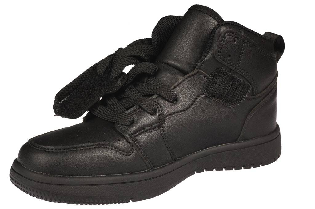 Buty sportowe dziecięce firmy Apawwa w kolorze czarnym. Cholewka została wykonana w całości ze skóry ekologicznej w bardzo ciekawym i modnym designie. Gruba, gumowa podeszwa zapewnia komfort i nie ślizga się. Rzep odpowiada zaś za łatwe zakładanie jak i ściąganie obuwia oraz umożliwia idealne dopasowanie ich do każdej stopy. Obuwie jest wysokie, za kostkę więc idealnie nada się na wiosenne dni. Model ten będzie idealny jako obuwie codziennego użytku, uzupełni każdą stylizacje nadając jej charakteru, jest bardzo lekki i wygodny. Nasza hurtownia posiada ten model w rozmiarach 32-37.