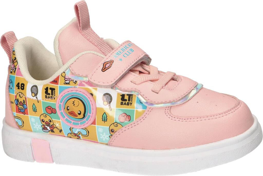 Buty sportowe dziecięce firmy American Club w dwóch świetnych wariantach kolorystycznych białym i różowym. Cholewka została wykonana ze skóry ekologicznej oraz materiałów tekstylnych bardzo wysokiej jakości. Ciekawe zdobienie w formie żółtej kaczki przyciąga uwagę i nadaj całości niepowtarzalnego charakteru. Gruba piankowa podeszwa zapewnia odpowiedni komfort oraz sprawia że model ten jest bardzo lekki. Dodatkowo obuwie posiada rzepy, które pozwalają na idealne dopasowanie buta do każdej stopy. Doskonale sprawdzą się podczas wiosennych spacerów lub zabaw na świeżym powietrzu. Buty sportowe dziecięce dostępne są w naszej hurtowni w rozmiarach 27-31.