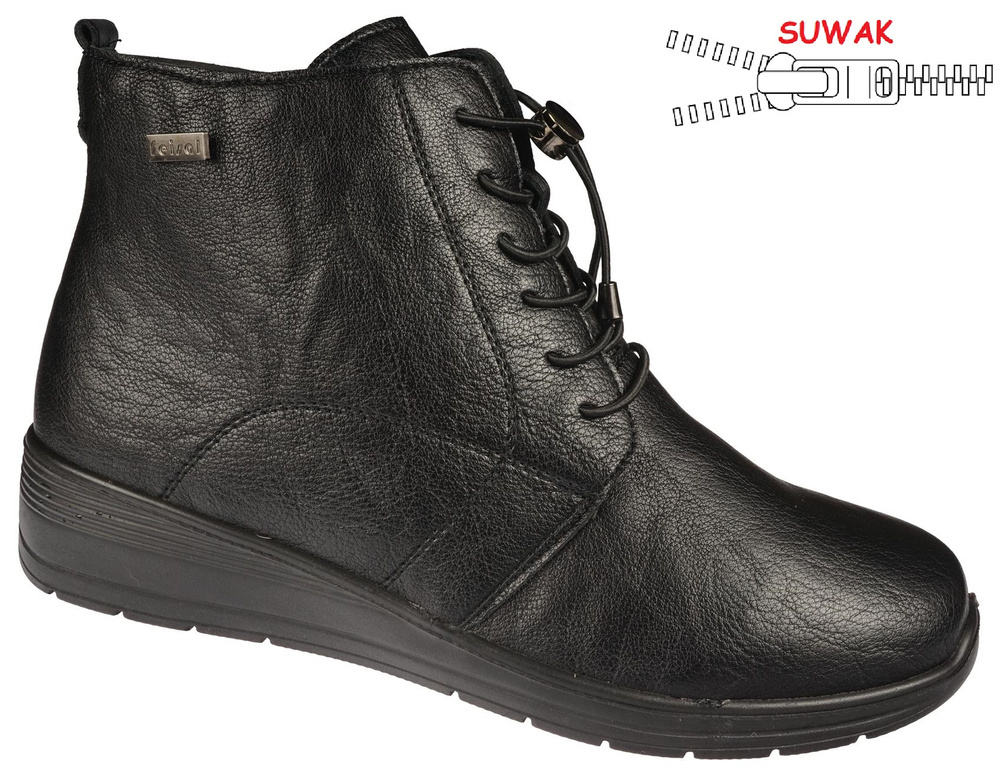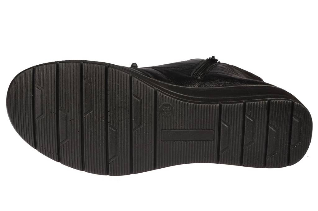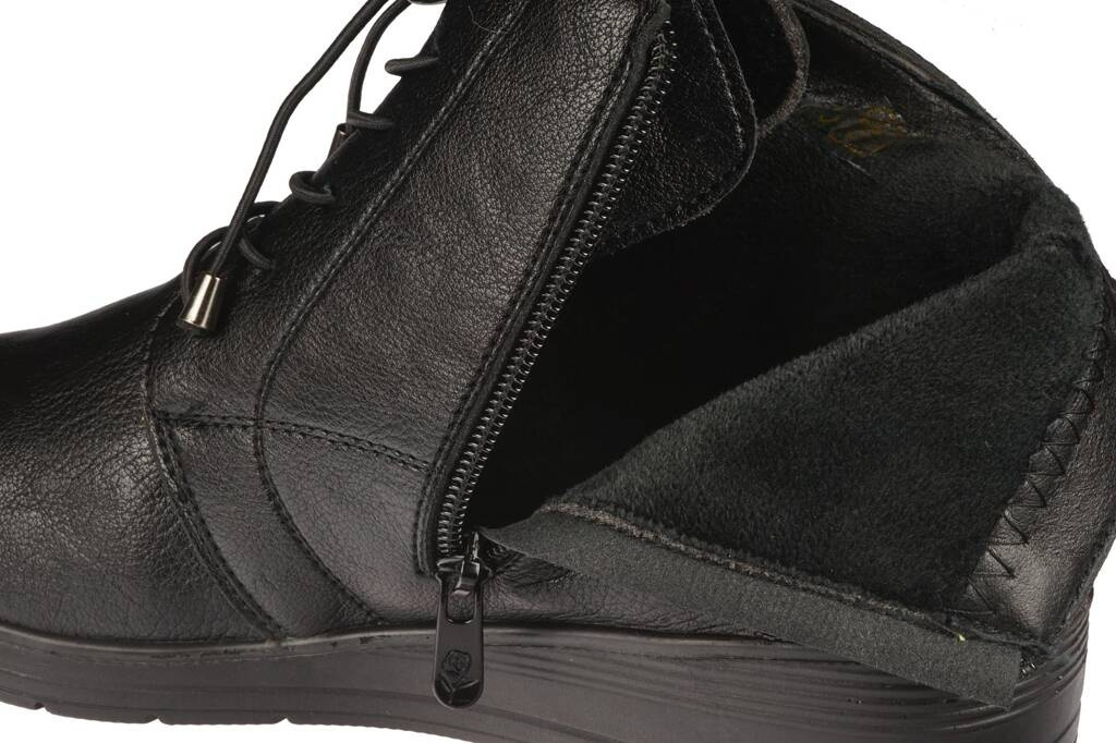 Buty zimowe damskie firmy Feisal w klasycznym czarnym kolorze. Wykonane zostały w bardzo solidny sposób z wysokogatunkowej skóry ekologicznej licowej. Gruba, gumowa podeszwa zabezpiecza przed poślizgiem oraz chroni stopę przed zimną posadzką. Ocieplany środek gwarantuje uczucie ciepła podczas chłodnych dni, buty sięgają za kostkę co dodatkowo chroni stopę przed zimnym wiatrem i niską temperaturą. Z boku został wszyty zamek, który ułatwia i przyspiesza ubieranie. Buty te idealnie sprawdzą się do codziennego użytku w sezonie zimowym. Dostępne są w naszej hurtowni w rozmiarach 36-41.