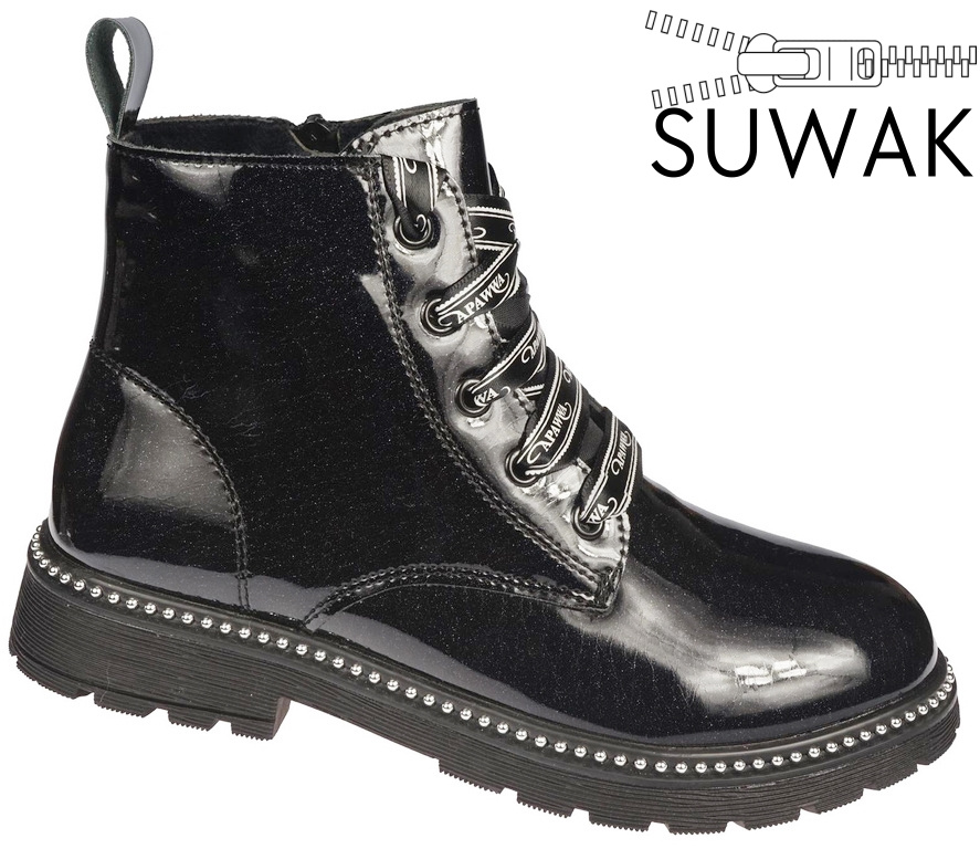 Piękne buty zimowe dziecięce firmy Apawwa w pięknym stylu w czarnym kolorze. Wykonane zostały na wzór glanów z bardzo dobrej jakości skóry ekologicznej. Ich podeszwy wyglądają na masywne i ciężkie jednak wykonane zostały z lekkich materiałów co sprawia że model ten jest wygodny podczas użytkowania. Bieżnik zapobiega poślizgowi a kolorowa cholewka nadaje uroku całości. Wnętrze obuwia zostało obszyte kożuchem, który odpowiada za komfort i nieprzepuszczanie zimna do środka. Model ten wyposażony został w zapięcie na zamek od wewnętrznej strony, ułatwia to i przyśpiesza zakładanie obuwia. Nasza hurtownia obuwia posiada ten model w rozmiarach 32-37.