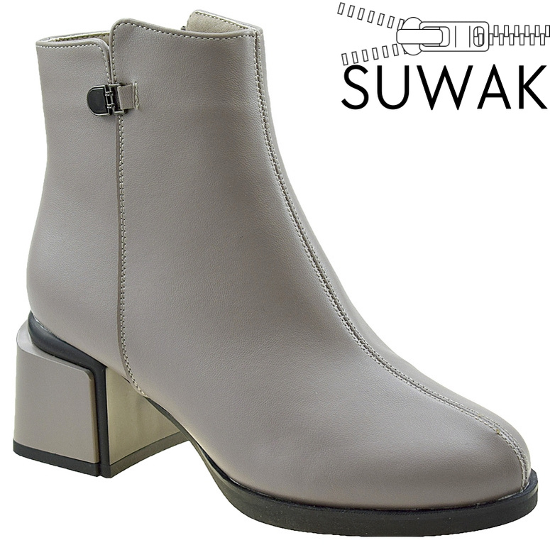 Buty zimowe damskie firmy Sandway w kolorze szarym w eleganckim stylu. Zaprojektowane zostały dla wymagających kobiet, które cenią sobie wygodę i elegancje w jednym. Wykonane zostały bardzo starannie i solidnie ze skóry ekologicznej w modnym i ciekawym stylu. Podeszwy zapobiegają poślizgowi, a buty same w sobie są lekkie i wygodne. Zostały obszyte w środku kożuchem, który chroni naszą stopę przed zimnem i wiatrem. Zamek na cholewce ułatwi zakładanie i ściąganie obuwia oraz zapewni idealne dopasowanie się obuwia do stopy. Buty te idealnie sprawdzą się do codziennego użytku podczas jesienno-zimowych dni. Dostępne są w rozmiarach 36-41.