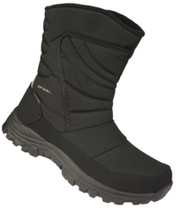 Śniegowce męskie firmy American Club w klasycznym czarnym kolorze. Wykonane zostały z trójwarstwowego materiału SoftShell, który chroni stopę przed wiatrem i niską temperaturą. Posiadają także membranę Tripletex, która przez jakiś czas zapobiega przedostawaniu się wody do środka. Osadzone są na grubej, gumowe podeszwie z bieżnikiem, zabezpiecza on przed poślizgiem oraz gwarantuje przyczepność do podłoża. Buty posiadają wewnątrz kożuch, która zapewnia ciepło podczas zimnych dni. Model ten jest bardzo wygodny i solidny, a materiały wysokiej jakości i solidne wykonanie gwarantują długotrwałość obuwia. Śniegowce męskie American Club dostępne są w naszej hurtowni w rozmiarach 41-46.