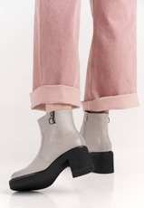 Piękne botki damskie firmy Sergio Leone w pięknym szarym kolorze oraz czarnej podeszwie. Osadzone zostały na kwadratowym obcasie o wysokości 7 cm, posiadają gumowe podeszwy zabezpieczające przed poślizgiem a wyściółka stworzona została z niezwykle miękkiego polaru. Zapewni on uczucie ciepła podczas chłodnych dni. Model ten wyposażony został w zamek dla ułatwienia zakładania obuwia. Pięknie wykonana cholewka przyciąga uwagę oraz sprawia że model ten jest wyjątkowy. Będzie pasował idealnie do sukienek ale również świetnie wpasuje się do spodni. Buty damskie Sergio Leone wspaniale prezentują się na nodze, są naprawdę wygodne i wytrzymałe. Znajdują się one w naszej hurtowni w rozmiarach 36-40.