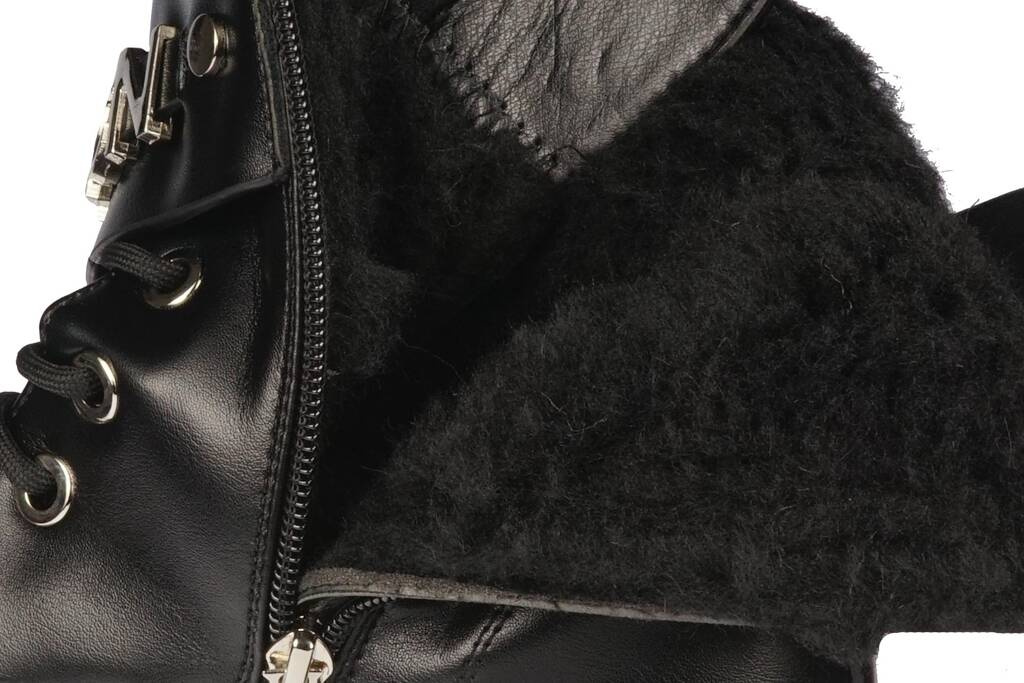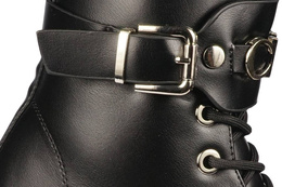 Buty zimowe młodzieżowe firmy Purlina w czarnym kolorze z ozdobnym paskiem na cholewce. Obuwie zostało zaprojektowane w bardzo modnym stylu na wzór glanów ze skóry ekologicznej. Podeszwy zapobiegają poślizgowi, a buty same w sobie są bardzo lekkie i wygodne. Zostały obszyte w środku kożuchem, który chroni naszą stopę przed zimnem i wiatrem. Ściągacz pozwolą dopasować obuwie odpowiednio do każdej stopy, dodatkowo obuwie posiada zamek dla ułatwienia zakładania. Buty te idealnie sprawdzą się do codziennego użytku podczas śnieżnych zimowych dni. Dostępne są w rozmiarach 36-41.