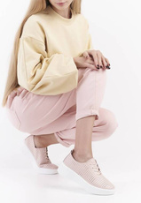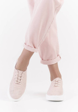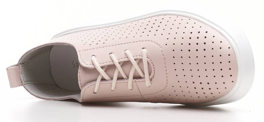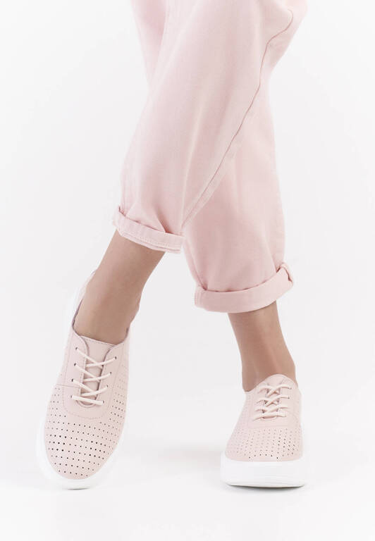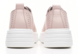 Buty sportowe damskie Sergio Leone w modnym różowym kolorze z białymi wstawkami to doskonałe połączenie stylowego designu i funkcjonalności. Wykonane z wysokiej jakości skóry naturalnej, wyróżniają się trwałością oraz eleganckim wyglądem. Dziurkowana cholewka zapewnia optymalną wentylację, co sprawia, że obuwie świetnie sprawdza się zarówno w cieplejsze dni, jak i podczas intensywnego użytkowania. Połączenie różowego koloru z białymi detalami dodaje lekkości i subtelności, tworząc modny, nowoczesny efekt.