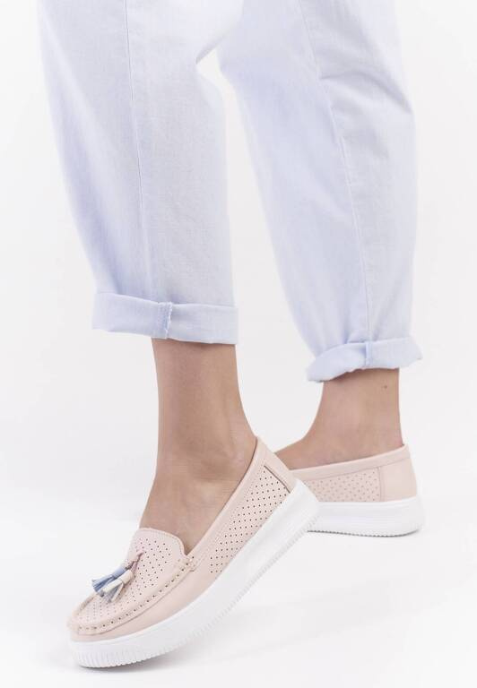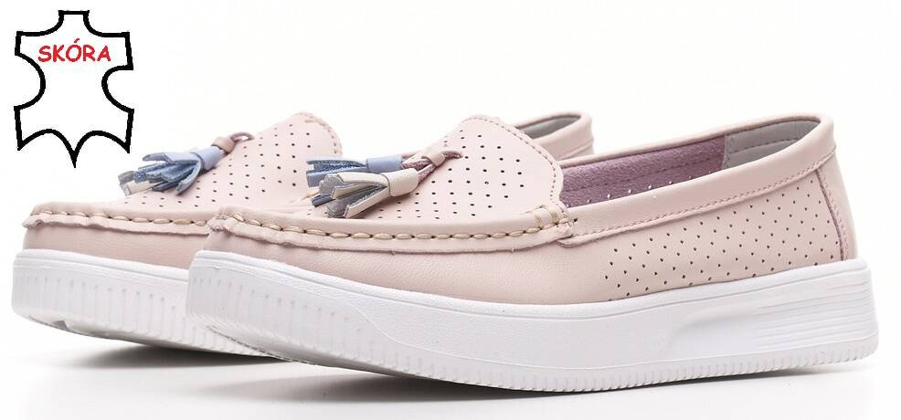 Dzięki lekkiej konstrukcji mokasyny doskonale dopasowują się do stopy, zapewniając elegancki wygląd i wygodę noszenia. Różowy kolor dodaje świeżości i delikatności, doskonale komponując się zarówno z casualowymi, jak i bardziej eleganckimi stylizacjami. To idealne obuwie na co dzień, do pracy, na spotkania ze znajomymi, a także na specjalne okazje, takie jak przyjęcia czy rodzinne uroczystości.