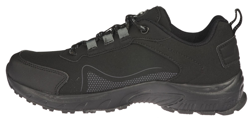 Model ten charakteryzuje się eleganckim wyglądem, który doskonale łączy funkcjonalność z nowoczesnym designem. Czarny kolor butów w połączeniu z gumowymi wstawkami i subtelnymi szarymi kropkami tworzy dynamiczny, ale uniwersalny styl, który łatwo dopasować do różnych stylizacji. Buty te doskonale sprawdzą się nie tylko podczas pieszych wycieczek w góry, ale także w codziennym użytkowaniu, zarówno w szkole, jak i na spacerach po mieście.