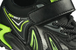 Buty sportowe dziecięce firmy Apawwa w kolorze czarnym z czarnymi wstawkami. Wykonane zostały w bardzo ciekawym i modnym stylu z najlepszej skóry ekologicznej. Ciekawy design nadaje butą charakteru i wyglądają świetnie na nodze. Piankowa podeszwa gwarantuje lekkość oraz zapobiega poślizgowi. Rzep odpowiada zaś za łatwe zakładanie jak i ściąganie obuwia oraz umożliwia idealne dopasowanie ich do każdej stopy. Model ten będzie idealny jako obuwie codziennego użytku, uzupełni każdą stylizacje nadając jej charakteru, jest bardzo lekki i wygodny. Nasza hurtownia posiada ten model w rozmiarach 26-31.