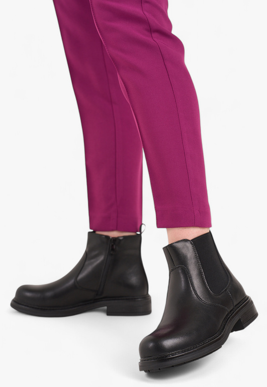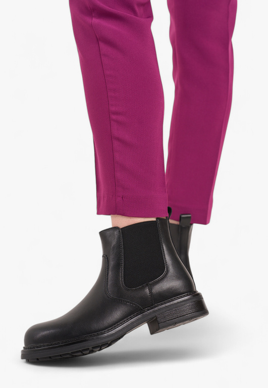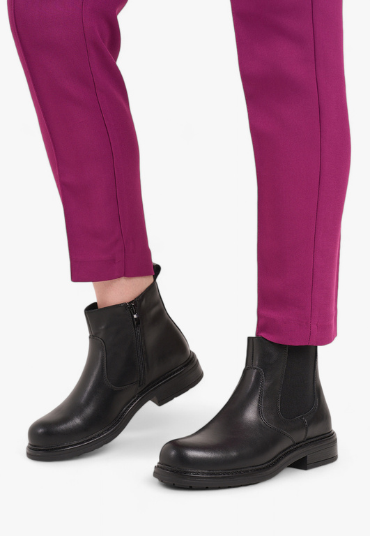 Sztyblety damskie firmy Sergio Leone w klasycznym czarnym kolorze zakończone migdałowym noskiem, który optycznie wydłuża i wyszczupla sylwetkę. Cholewka wykonana została w gładkim wykończeniu ze skóry naturalnej o wysokiej jakości, materiał ten świetnie sprawdza się w tego typu obuwiu, jest również łatwy w utrzymaniu czystości. Model ten posiada wszyte gumki po po obu stronach co ułatwia zakładanie. Środek wyposażony został w ocieplacz jakim jest miękki i przyjemny w dotyku polar. Obuwie będzie pasowało idealnie do sukienek ale również świetnie skomponuje się ze spodniami. Chropowata podeszwa zapobiega poślizgowi a miękka wkładka zapewnia wygodę podczas użytkowania. Buty damskie Sergio Leone znajdują się one w naszej hurtowni w rozmiarach 36-40.