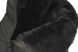 Bardzo ładne buty zimowe męskie firmy Le Scarpe w czarnym kolorze. Obuwie zostało wykonane z wysokiej jakości ortalionu dla wymagających użytkowników ceniących sobie wygodę i wytrzymałość. Gruba, gumowa podeszwa zabezpiecza przed poślizgiem oraz chroni stopę przed zimną posadzką. Ocieplany środek gwarantuje uczucie ciepła podczas chłodnych dni, buty sięgają za kostkę co dodatkowo chroni stopę przed zimnym wiatrem i niską temperaturą. Buty te idealnie sprawdzą się do codziennego użytku w sezonie zimowym. Dostępne są w naszej hurtowni w rozmiarach 41-46.