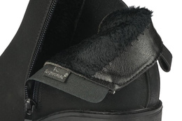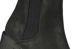 Sztyblety damskie firmy Sergio Leone w klasycznym czarnym kolorze. Osadzone zostały na grubej, masywnej podeszwie z klockowym obcasem o wysokości 6 cm wykonanej w najmodniejszym teraz stylu. Model ten nie posiada zapięcia lecz nie utrudnia to zakładania gdyż wyposażony został on w dwie gumy znajdujące się po wewnętrznej jak i zewnętrznej stronie, są one elastyczne i ułatwiają zakładanie. Pięknie wykonana cholewka przyciąga uwagę oraz sprawia że model ten jest wyjątkowy. Będzie pasował idealnie do sukienek ale również świetnie wpasuje się do spodni. Buty damskie Sergio Leone wspaniale prezentują się na nodze, są naprawdę wygodne i wytrzymałe. Znajdują się one w naszej hurtowni w rozmiarach 36-41.