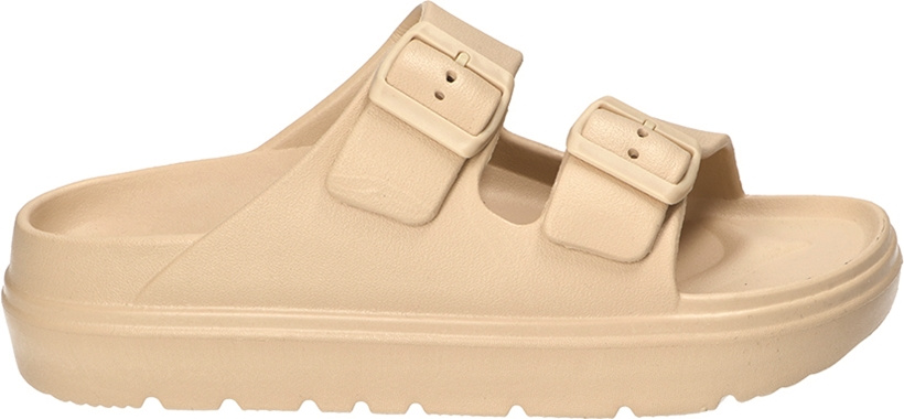 Podeszwa klapek została stworzona z lekkiego, trwałego i elastycznego materiału, który cechuje się wysoką odpornością na ścieranie, zapewniając długotrwałe użytkowanie, nawet przy intensywnym kontakcie z wodą i piaskiem. Dodatkowo, materiał ten skutecznie tłumi wstrząsy, co zwiększa komfort użytkowania, zwłaszcza podczas długich spacerów. Wkładki wewnętrzne wykonane zostały z miękkiej pianki, która jest przyjazna dla skóry, komfortowa i nie pochłania wody, co sprawia, że klapki są wygodne i funkcjonalne, niezależnie od warunków.