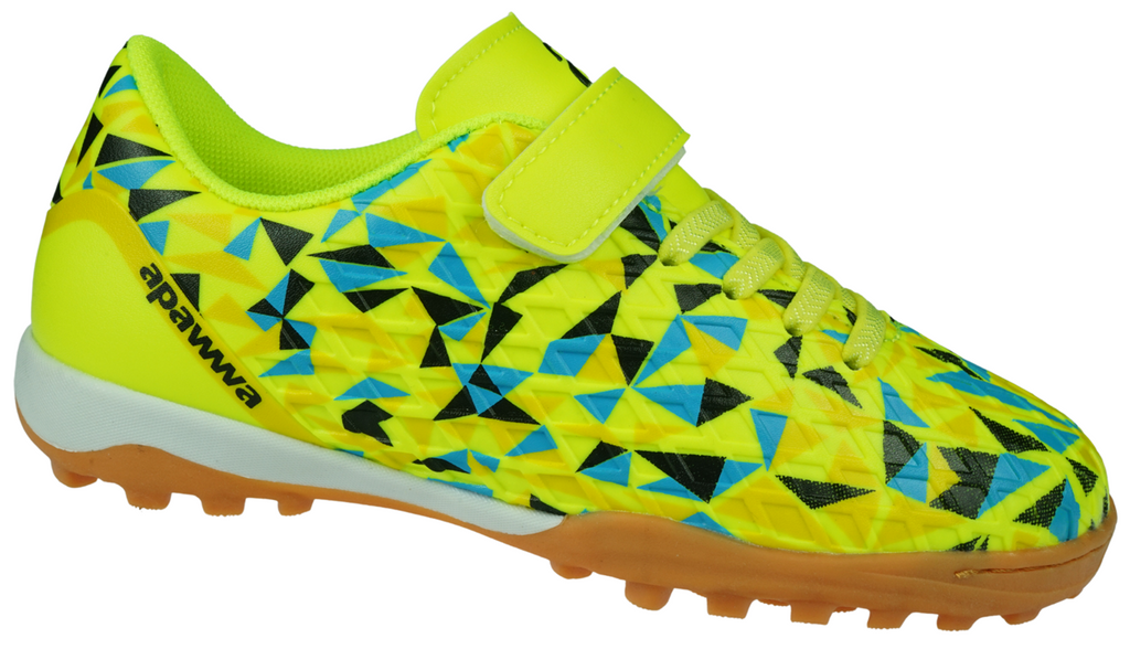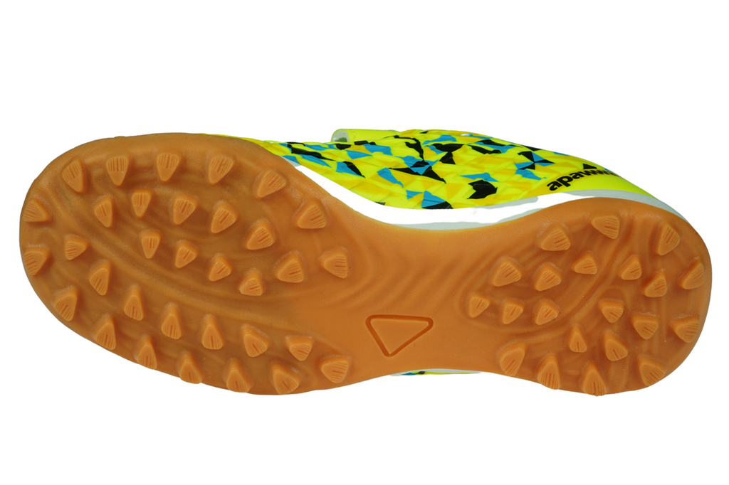 Podeszwa turfy piłkarskich Apawwa, typowa dla obuwia przeznaczonego do gry w piłkę nożną, została zaprojektowana z myślą o maksymalnej przyczepności do podłoża. Dzięki specjalnie rozmieszczonym korkom, buty zapewniają doskonałą stabilność i optymalną trakcję, co jest niezwykle ważne podczas szybkich ruchów, przyspieszeń oraz zwrotów na boisku. Tego rodzaju konstrukcja podeszwy sprawdza się zarówno w czasie zajęć sportowych, jak i podczas meczów, oferując młodym piłkarzom odpowiednie wsparcie w każdej sytuacji.