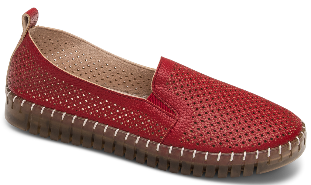 Półbuty damskie Skotnicki w eleganckim czerwonym kolorze to doskonały wybór dla kobiet ceniących styl i wygodę. Ażurowa cholewka nadaje im lekkości i zapewnia odpowiednią cyrkulację powietrza, co sprawia, że stopa pozostaje świeża nawet podczas długiego noszenia. Wykonanie ze skóry ekologicznej gwarantuje estetyczny wygląd oraz trwałość, dzięki czemu obuwie świetnie sprawdzi się zarówno na co dzień, jak i na bardziej eleganckie okazje.