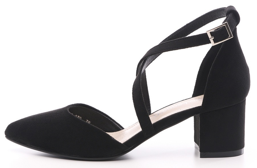 Obcas w formie klocka zapewnia stabilność oraz komfort noszenia przez dłuższy czas, będąc jednocześnie elegancką alternatywą dla klasycznej szpilki. Dzięki solidnemu wykonaniu oraz odpowiedniemu wyważeniu, sandały gwarantują wygodę podczas chodzenia, bez rezygnacji ze stylowego wyglądu. Zamknięty nosek to dodatkowy atut modelu – subtelnie wysmukla stopę, zapewnia ochronę palców i dodaje klasycznego charakteru całemu fasonowi. Czarne sandały z obcasem klockowym stanowią doskonałe uzupełnienie formalnych i półformalnych zestawów.