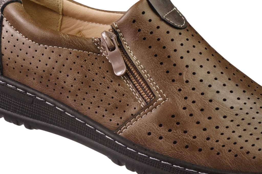 Podeszwa z antypoślizgowego tworzywa chroni przed niebezpiecznymi poślizgami na różnych nawierzchniach, zwiększając bezpieczeństwo użytkowania. Zamek błyskawiczny w połączeniu z elastyczną gumką umożliwia szybkie zakładanie i zdejmowanie obuwia bez nadmiernego wysiłku. Konstrukcja półbutów została zaprojektowana z myślą o połączeniu estetyki z praktycznością, dzięki czemu model ten doskonale sprawdza się zarówno w warunkach miejskich, jak i podczas dłuższych spacerów.