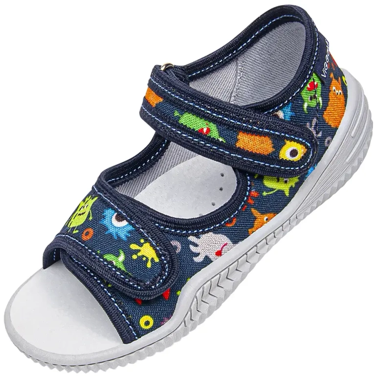 Wysokogatunkowe materiały włókiennicze użyte do produkcji gwarantują trwałość, odporność na zużycie oraz komfort noszenia. Skórzana wkładka zapewnia odpowiednią amortyzację i higienę, wspierając zdrowy rozwój stóp. Otwarty nosek poprawia cyrkulację powietrza, co przekłada się na większy komfort termiczny podczas cieplejszych dni.