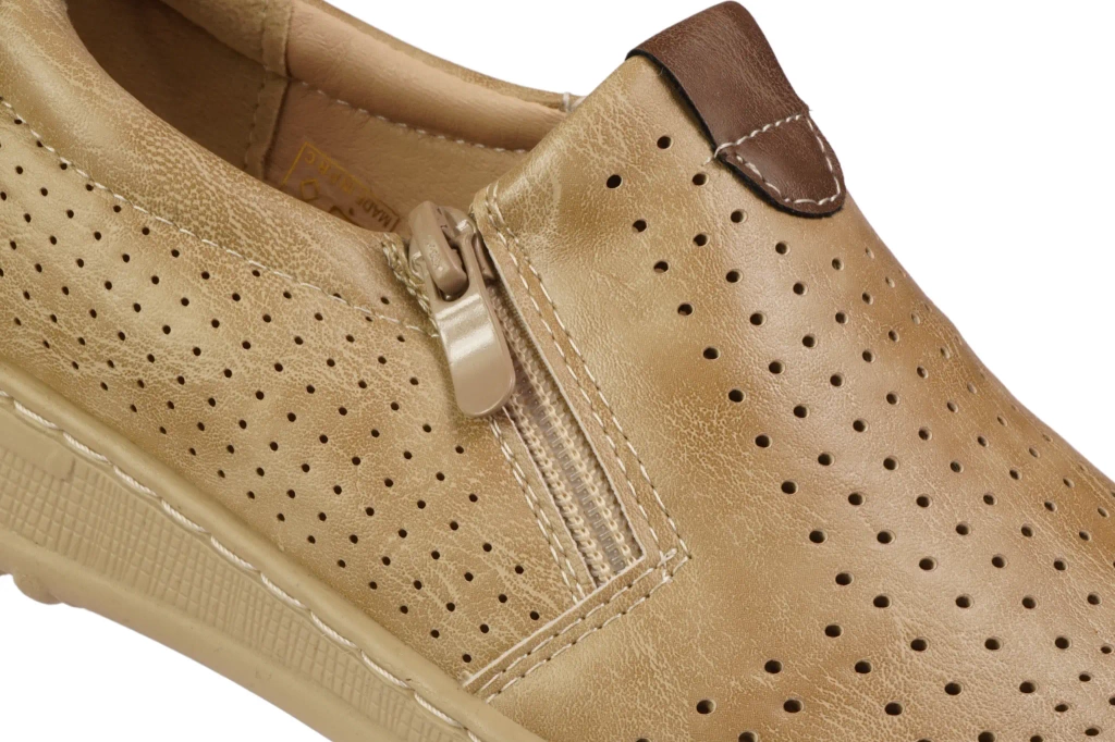Podeszwa z antypoślizgowego tworzywa chroni przed niebezpiecznymi poślizgami na różnych nawierzchniach, zwiększając bezpieczeństwo użytkowania. Zamek błyskawiczny w połączeniu z elastyczną gumką umożliwia szybkie zakładanie i zdejmowanie obuwia bez nadmiernego wysiłku. Konstrukcja półbutów została zaprojektowana z myślą o połączeniu estetyki z praktycznością, dzięki czemu model ten doskonale sprawdza się zarówno w warunkach miejskich, jak i podczas dłuższych spacerów.