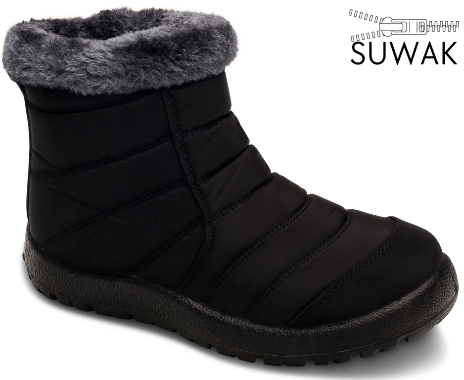 Ocieplana wewnętrzna warstwa skutecznie chroni przed zimnem, gwarantując komfort nawet przy niskich temperaturach. Praktyczny zamek boczny pozwala na szybkie i bezproblemowe zakładanie oraz zdejmowanie, co stanowi istotne udogodnienie w codziennym użytkowaniu. Konstrukcja buta zapewnia dobre dopasowanie do stopy, a solidna, gumowa podeszwa zwiększa przyczepność do podłoża, co przekłada się na bezpieczeństwo podczas poruszania się po śliskich nawierzchniach.