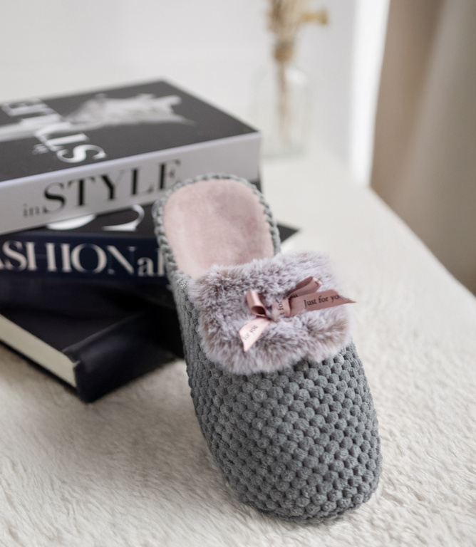 Szare pantofle damskie Meteor to harmonijne połączenie klasycznego designu, codziennej funkcjonalności oraz komfortu noszenia w domowych warunkach. Model wyróżnia się wywijanym futerkiem w kontrastowym odcieniu oraz starannie dopracowaną wkładką, co nadaje obuwiu modny, a zarazem przytulny charakter. Stonowana kolorystyka oraz elegancka linia doskonale wpisują się w aktualne trendy sezonu jesienno-zimowego.