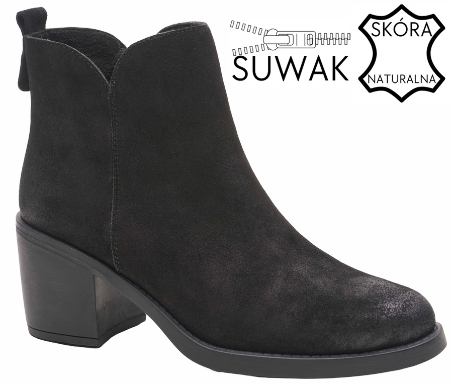 Botki damskie marki Sergio Leone w klasycznym czarnym kolorze to połączenie elegancji, wygody i codziennej funkcjonalności. Model wyróżnia się estetyczną cholewką wykonaną z wysokiej jakości skóry naturalnej zamszowej, ozdobioną subtelnymi przeszyciami, które dodają charakteru i modowego wyrazu. Obuwie osadzone zostało na stabilnym, kwadratowym obcasie o wysokości 6 cm, który optycznie wydłuża sylwetkę i zapewnia komfort podczas całodziennego użytkowania.
