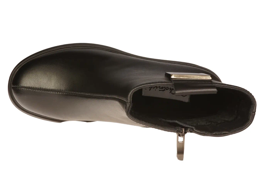 Damskie obuwie zimowe marki Skotnicki w klasycznym czarnym kolorze stanowi doskonałe połączenie ponadczasowego designu z funkcjonalnością niezbędną w sezonie jesienno-zimowym. Stabilny koturn o wysokości 5,5 cm dodaje sylwetce elegancji, jednocześnie gwarantując komfort podczas codziennego użytkowania. Cholewka wykonana z wysokiej jakości skóry naturalnej prezentuje się stylowo, co czyni ten model odpowiednim wyborem zarówno do stylizacji casualowych, jak i bardziej eleganckich.