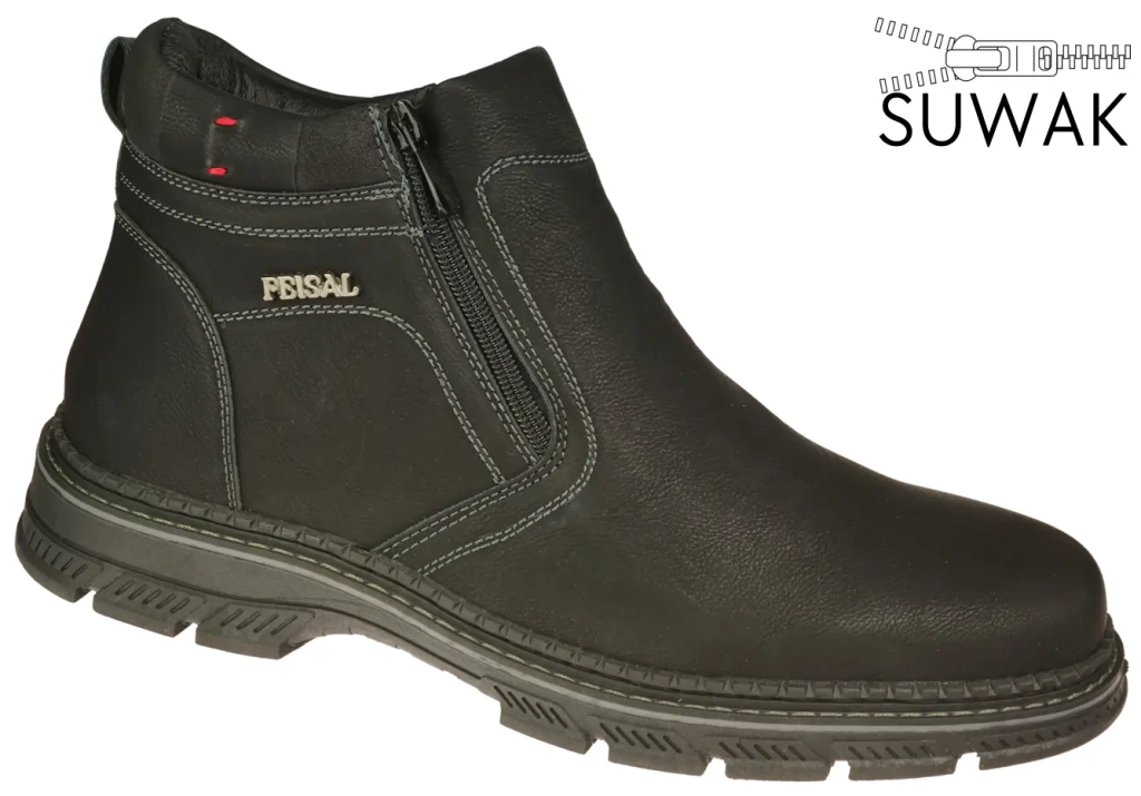 Zamek błyskawiczny umieszczony po obu stronach cholewki znacząco ułatwia zakładanie i zdejmowanie obuwia, co czyni ten model wyjątkowo praktycznym. Obuwie dostępne jest w rozmiarach 44–48, co stanowi atrakcyjną propozycję dla mężczyzn poszukujących większych rozmiarów butów zimowych. Model Feisal to solidny wybór dla sklepów obuwniczych i hurtowni, które chcą poszerzyć ofertę o funkcjonalne, stylowe i komfortowe obuwie zimowe dla mężczyzn.
